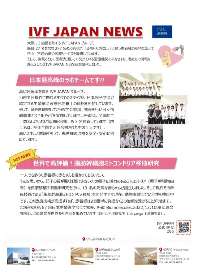 この度、IVF JAPAN GROUP(医療法人三慧会)の最新情報を紹介する『IVF JAPAN NEWS』を創刊しました。